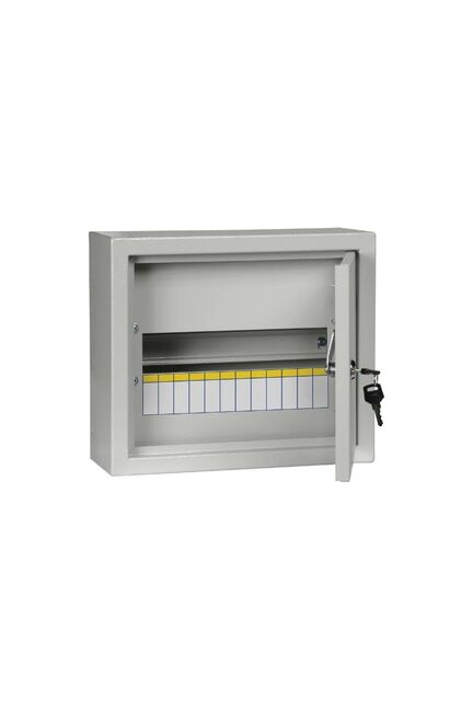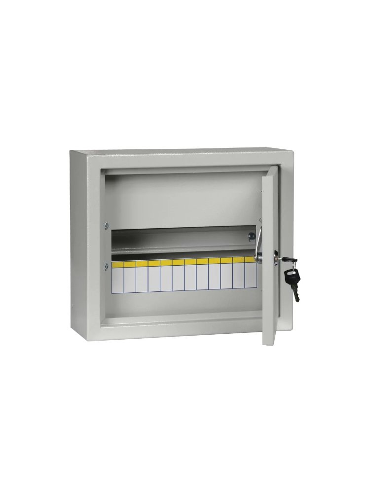 Металлический щиток на 12 модулей, IP31, размер 265×310×120 мм, с замком и клеммами. Для настенного монтажа в жилых и коммерческих помещениях.