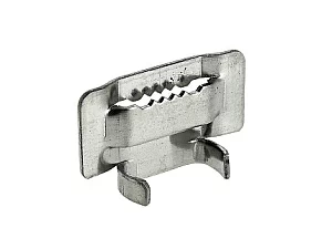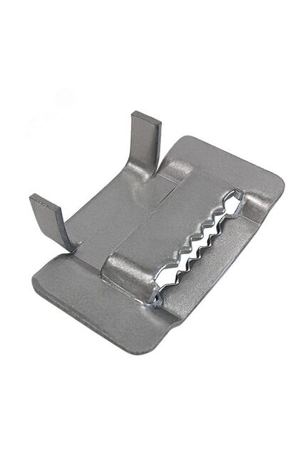 Скрепа (бугель) НС-20-Т предназначена для фиксации ленты из нержавеющей стали С-20 в процессе монтажа различных кронштейнов и узлов крепления на опорах ВЛ. Монтаж производится при помощи натяжного инструмента MBT-003, MBT-004. Бугель изготовлен из нержавеющей стали, имеет зубья. Крепкий стальной зажим с зубьями для быстрой и надёжной фиксации ленты 20 мм при монтаже, упаковке и креплении инженерных конструкций.