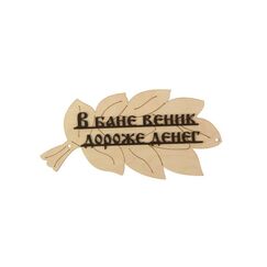Декоративная табличка для бани в форме веника 30х17 см с надписью «В бане веник дороже денег». Устойчивая к влаге, легко крепится, создает уют.