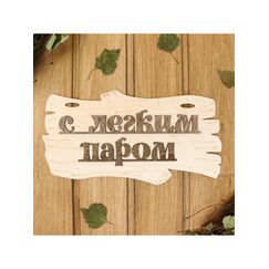 Табличка для бани в виде веника 30х17 см с надписью 'С лёгким паром!'. Устойчива к влаге и температурам, легко крепится, идеальна для декора бани.
