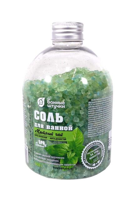 - Состав: морская соль, экстракт чая, эфирное масло мяты, без красителей и вредных примесей.
