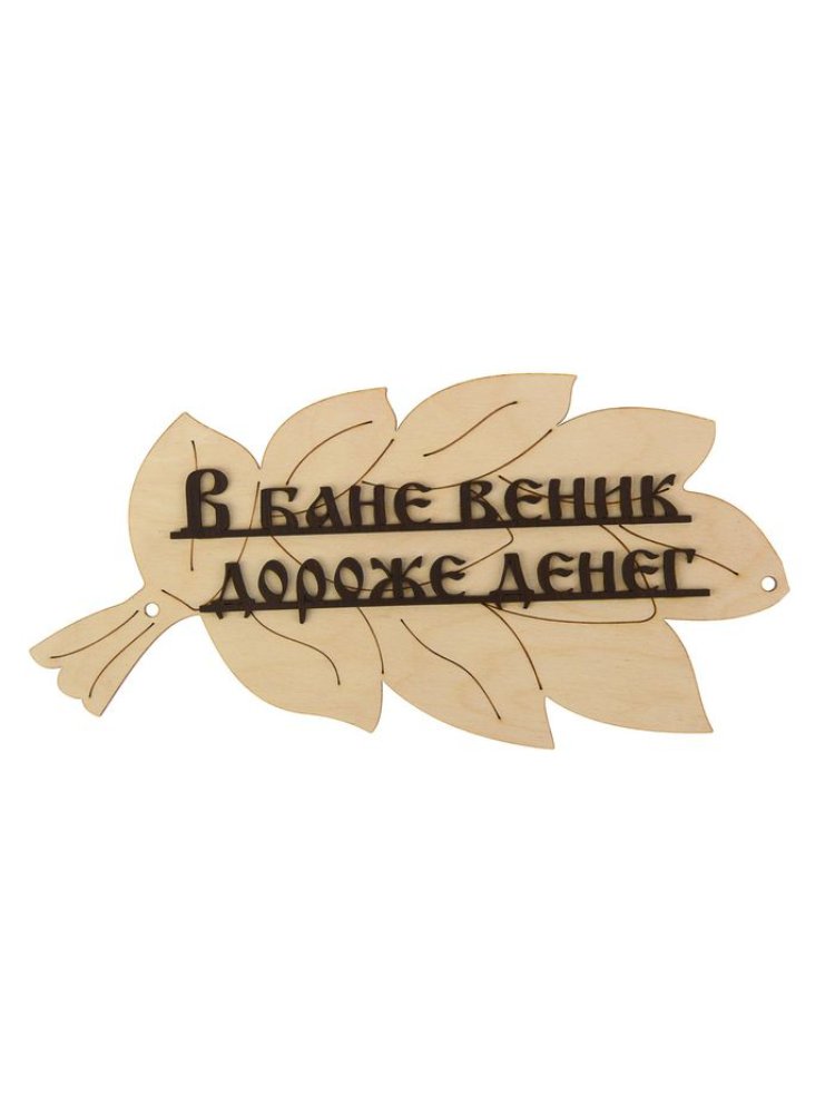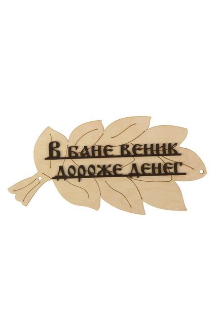 Табличка для бани "В бане веник дороже денег" в виде веника 30х17см в Солнечный