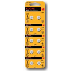 Часовые батарейки Kodak AG13 357 LR1154, LR44 KAG1310. Щелочные элементы питания широко применяются в наручных часах и другой малогабаритной электронике. Блистер 10 батареек Щелочные батарейки LR44 подходят для тесных приборов и измерителей — надежное питание, долгий срок службы, оптимальны для строительного оборудования.