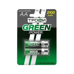 Аккумулятор никель-металлгидридный. Емкость 2100 мАч. Типоразмер АА. NiMH аккумуляторы 2100 мАч, 1.2 В, GREEN POWER, 2 шт — длительная работа, многократная перезарядка, экобезопасность для инструментов и техники.