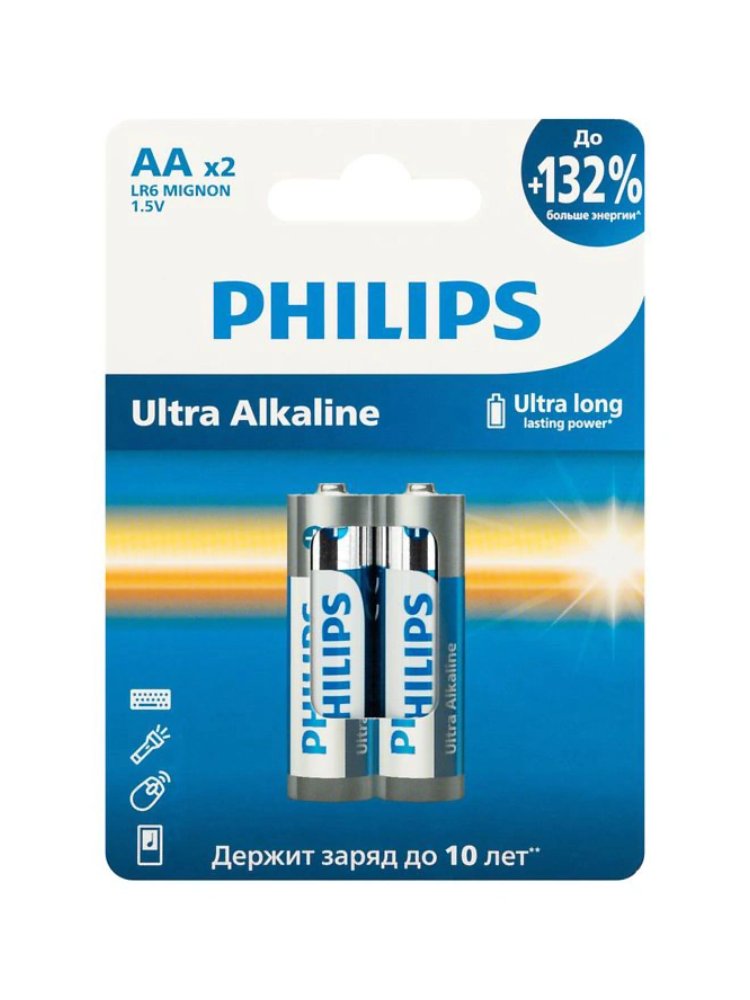 Батарейка Philips LR6-2BL ULTRA Alkaline блистер 2 (AA) в Солнечный