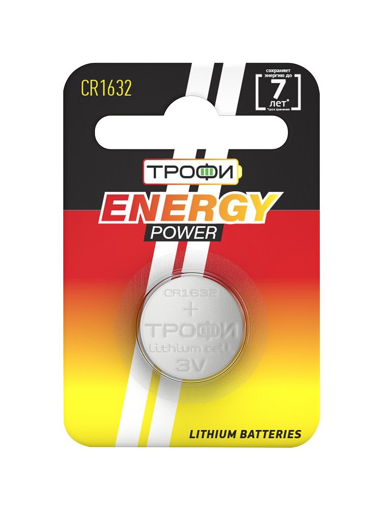 Батарейка Трофи CR1632-1BL ENERGY POWER Lithium блистер 1