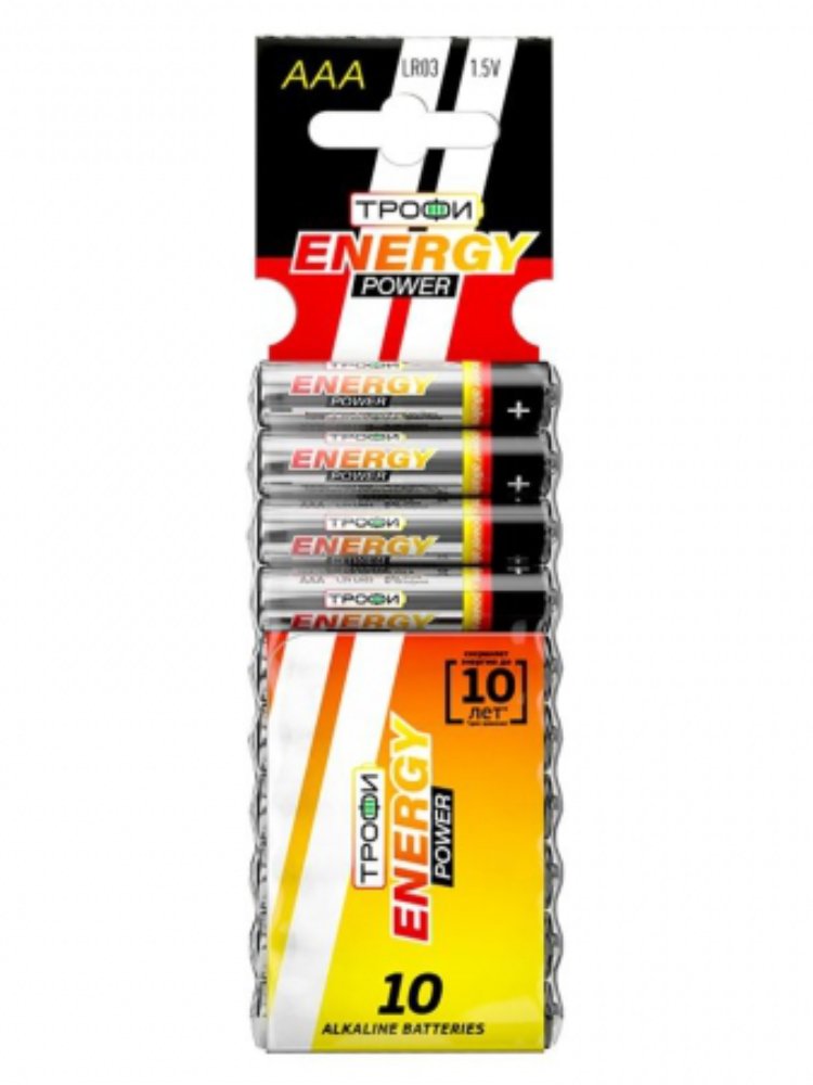 Батарейка Трофи LR03-10BL ENERGY POWER Alkaline блистер 10 (AAA) в Солнечный