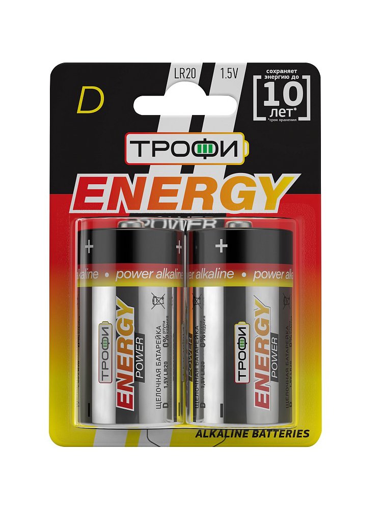 Батарейка Трофи LR20-2BL ENERGY POWER Alkaline блистер 2 (373/D) в Солнечный