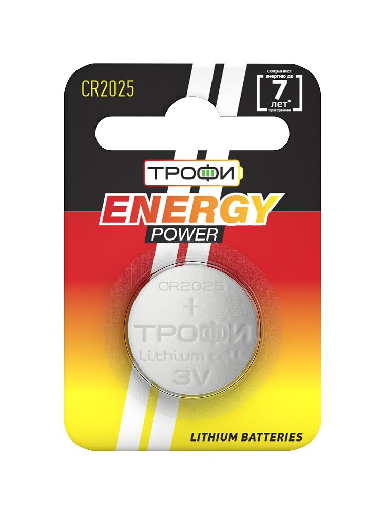 Батарейка Трофи CR2025-1BL ENERGY POWER Lithium блистер 1 в Солнечный