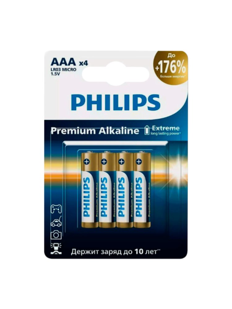 Батарейка Philips LR03-4BL PREMIUM Alkaline блистер 4 (AAA) в Солнечный