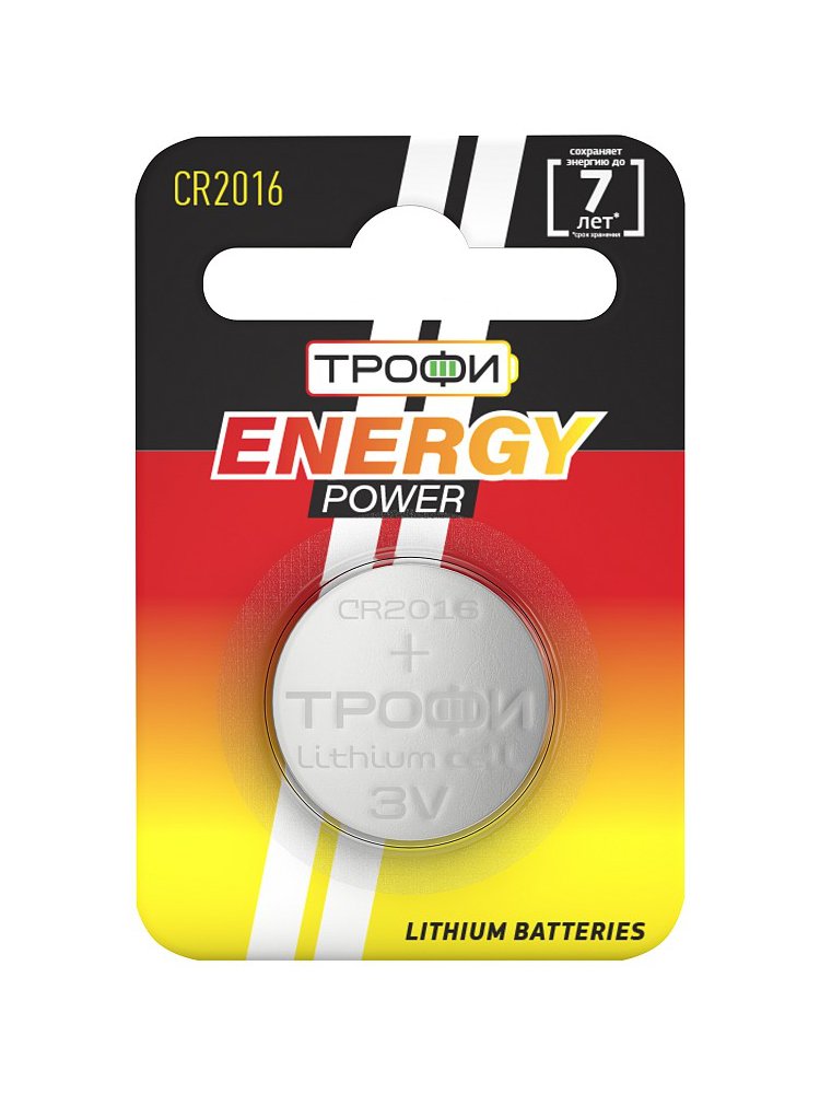 Батарейка Трофи CR2016-1BL ENERGY POWER Lithium блистер 1