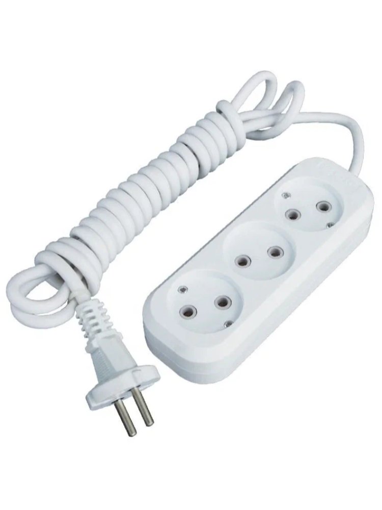 Удлинитель 3 розетки, 3 м, 10A, провод 2х0,75 мм², без заземления — для удобного и безопасного подключения инструментов на объекте.