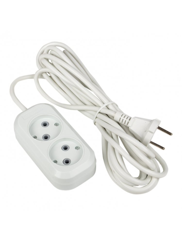 Два гнезда, заземление, длина кабеля 3 м, ток до 16А, прочный корпус и надежность для безопасного подключения электроприборов дома и на стройке.
