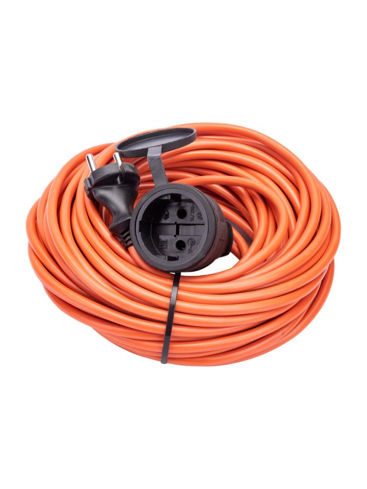 Надёжный удлинитель 20 м, 10А, IP44, ПВС 2х1 мм², одно гнездо, отлично защищён от влаги и пыли — для строительных, ремонтных дома и на даче.