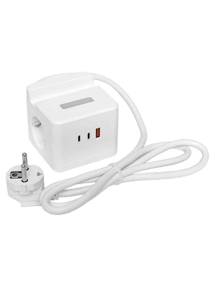 Удлинитель 2 гнезда 1,3м с з/к 16А 1 USB, 2 Type-C + подставка/ночник "КУБ" EKF в Солнечный