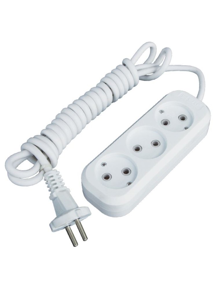 Функциональный удлинитель на 3 гнезда, 5 м, 10А, безопасен и компактен. Отлично подходит для дома, строительства и мастерской. Без заземления.