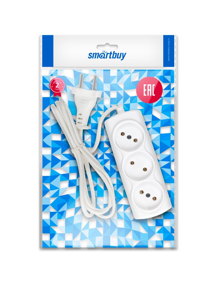 Удлинитель 3 гнезда 7м без з/к 10А 2х1 ПВС Smartbuy