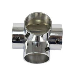 Соединяет четыре трубы под прямым углом, устойчива к нагрузкам, из прочной стали для надежных инженерных и строительных конструкций.