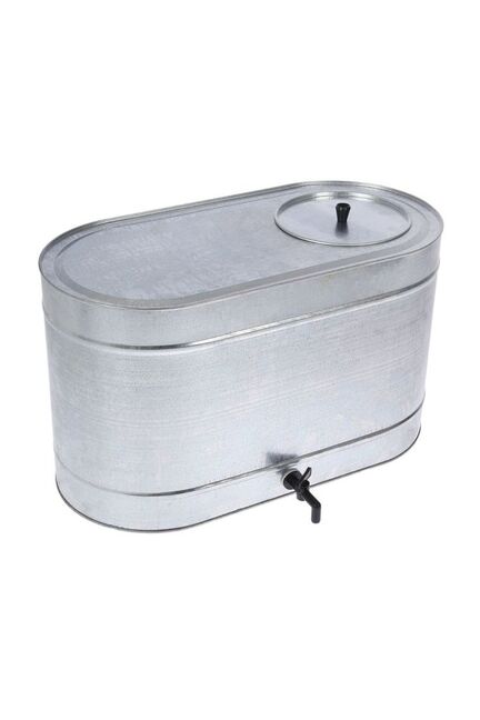 Овальный оцинкованный бак с краном, 75 л — для хранения воды, устойчив к ржавчине, удобен в быту и на стройке, легко наполнять и очищать.