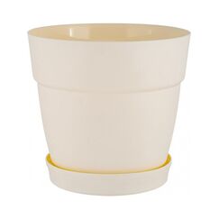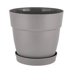 Прочный пластиковый горшок объемом 1,5 л с подставкой, диаметр 170 мм. Подходит для растений любого типа, защищает мебель от влаги.