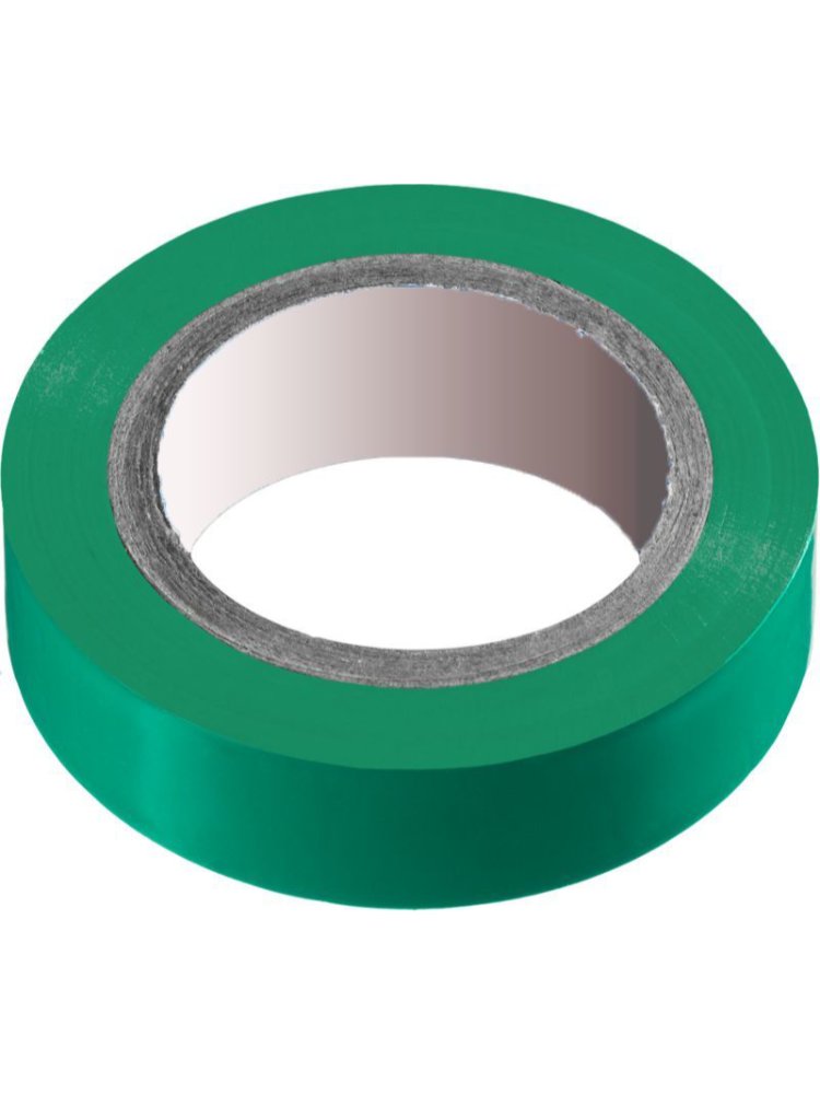 ПВХ-изолента 15мм×20м, зелёная, устойчива к влаге и химии, для изоляции, фиксации и маркировки электропроводки и кабелей.