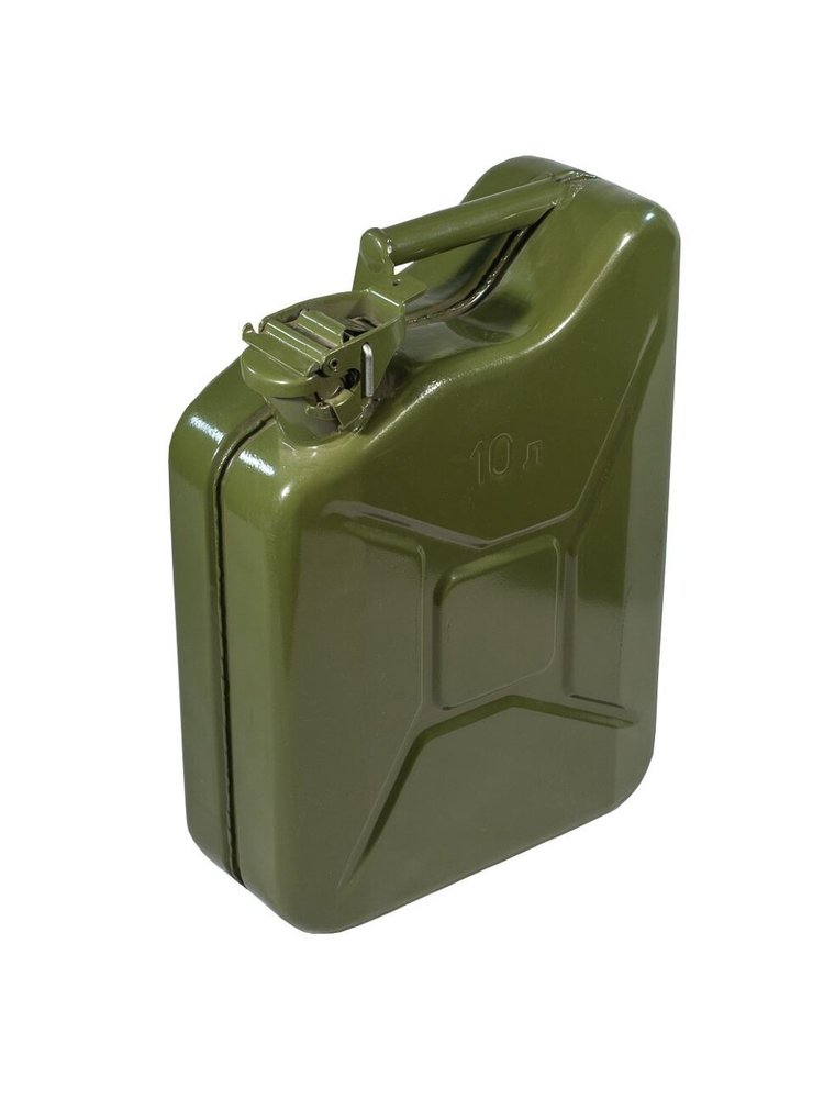 Прочная стальная ёмкость 10 л с антикоррозийным покрытием и герметичной крышкой для безопасного хранения и транспортировки ГСМ.
