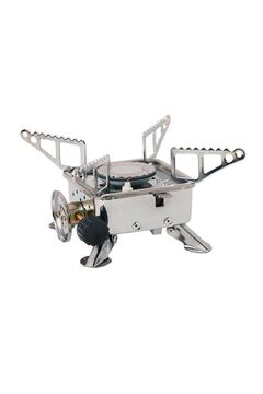 Плита снабжена специальным механизмом в виде раскладывающихся «лепестков» из нержавеющей стали предохраняющих пламя от задувания ветром во время приготовления пищи. Компактная газовая мини-плита с мощностью 1,8 кВт, ветрозащитой и цанговым баллоном для приготовления пищи на стройке, даче и отдыхе.