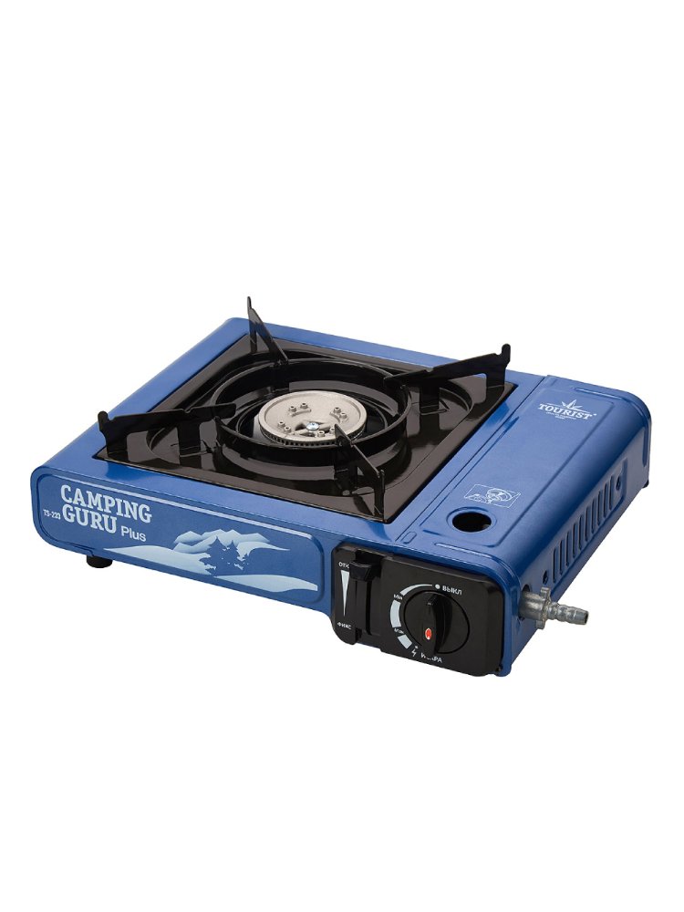 Идеальное решение для выездных работ, ремонта и отдыха на природе — портативная газовая плита с переходником Tourist CAMPING GURU PLUS (TS-233) быстро обеспечит теплом и горячим питанием в любых условиях.