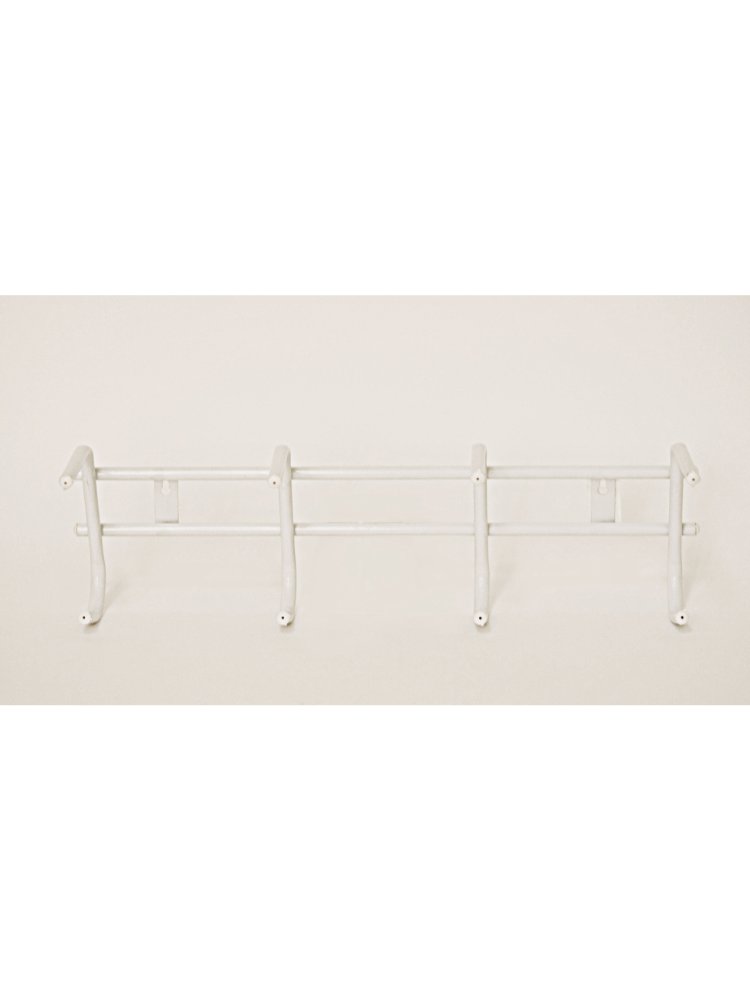 Настенная вешалка на 4 металлических крючка, устойчива к износу и влаге, подходит для одежды и аксессуаров в бытовых и производственных помещениях.