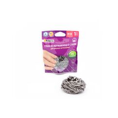 Металлическая спиральная губка 40 г из нержавеющей стали: эффективно удаляет стойкие загрязнения и не ржавеет даже при интенсивном использовании.