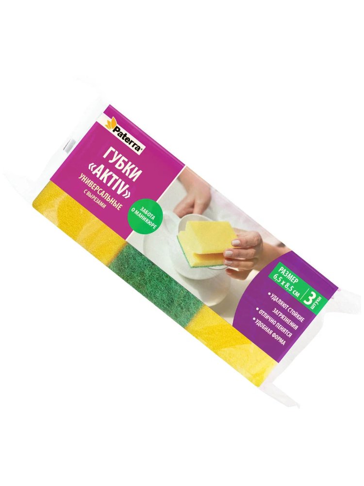 Губка для посуды PATERRA AKTIV, профильная 65*85*44мм, 3шт в Солнечный