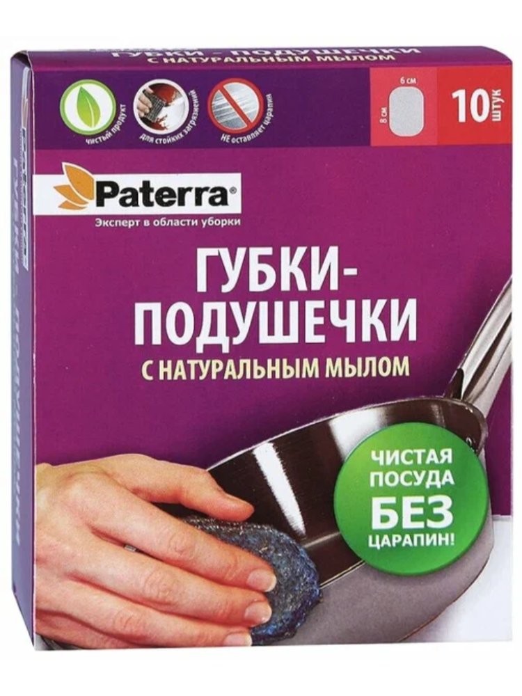 Губка-подушечки с натуральным мылом PATERRA металлические, 10шт в Солнечный