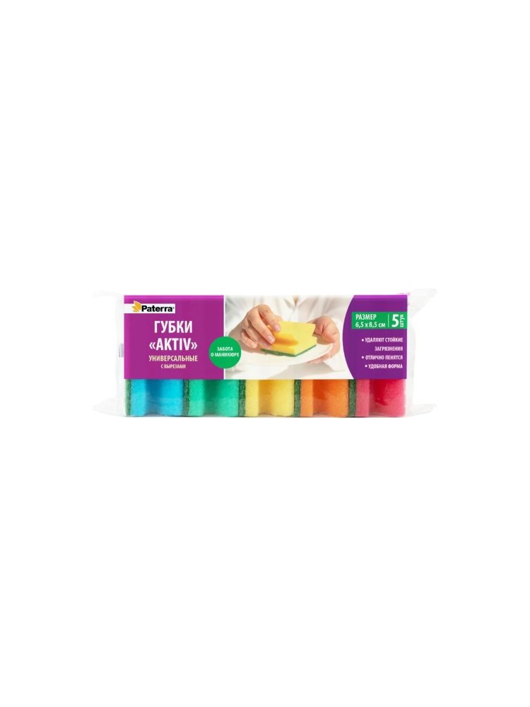 Губка для посуды PATERRA AKTIV, профильная 65*85*40мм, 5шт в Солнечный