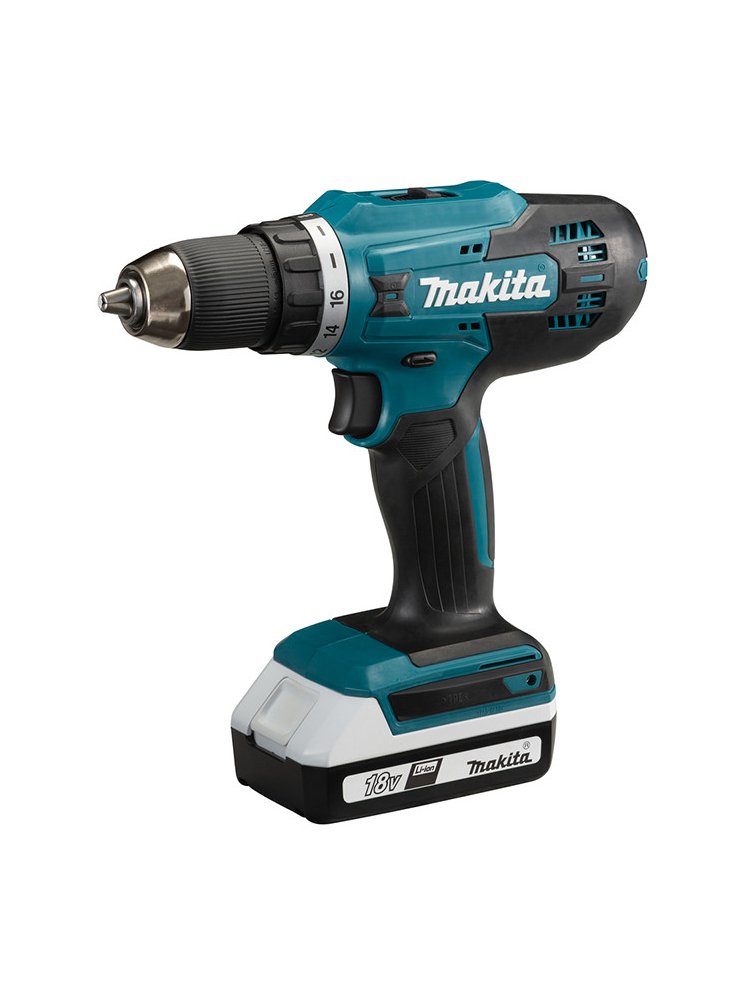 Двухскоростная дрель-шуруповерт Makita DF488D004 для сверления отверстий в древесине и стали. Дрель-шуруповерт для выполнения большого спектра работ по сверлению и закручиванию. Аккумуляторная дрель 18В с 2 аккумуляторами 2Ач, крутящий момент до 42 Н·м, 2 скорости, кейс. Для ремонта, монтажа и сборки мебели.
