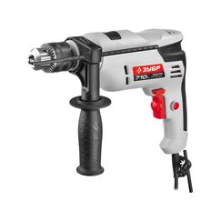 Ударная дрель Зубр отлично сверлит отверстия в различных материалах - дереве, металле, кирпиче и даже бетоне. В режиме сверления с ударом  дрель эффективно справляется с твердыми стенами и прочными конструкциями. Плавный запуск страхует от увода сверла во время начала сверления и позволяет плавно наращивать обороты. Во время работы скорость вращения сверла регулируется усилием нажатия на пусковую кнопку. Инструмент может использоваться для завинчивания и отвинчивания шурупов при установке соответствующих бит. Мощная дрель 780 Вт с ударным режимом и реверсом, металлический редуктор, регулировка оборотов, кейс. Для металла, дерева, бетона.