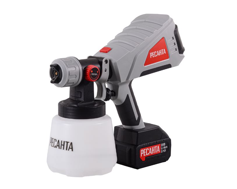 Аккумуляторный краскораспылитель 20В 4Ач для быстрой и равномерной покраски любых поверхностей, с бачком 800 мл.