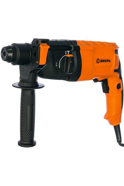 Перфоратор ВИХРЬ П-650К имеет два режима работы: сверление и сверление с ударом. Предусмотрена система защиты рабочего механизма от попадания пыли. Дополнительная передняя рукоятка поворачивается на 360 градусов для более комфортной работы. Инструмент используется для сверления отверстий в металле, дереве, бетоне. Основная рукоятка имеет мягкую накладку для надежного удержания. Перфоратор можно хранить подвесив, благодаря наличию отверстия в нижней части задней рукоятки. Мощность 650 Вт, 3 режима работы, энергия удара 2,1 Дж, SDS-plus, кейс. Для сверления, долбления бетона и кирпича. Удобный и надежный инструмент.