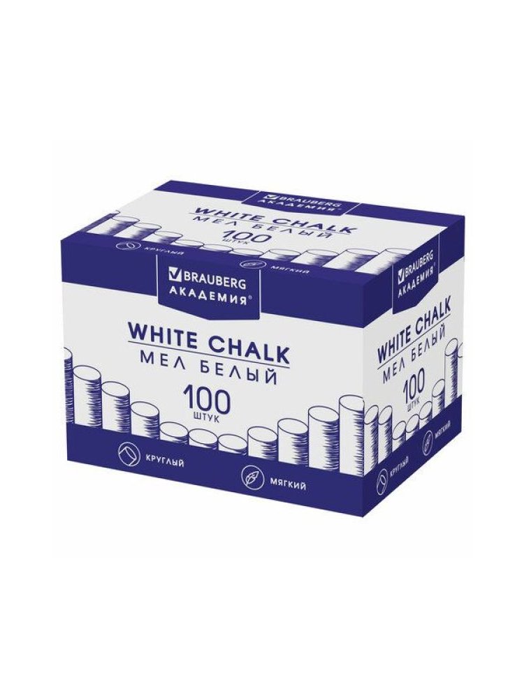 Мел белый круглый BRAUBERG Академия (упаковка 100шт)