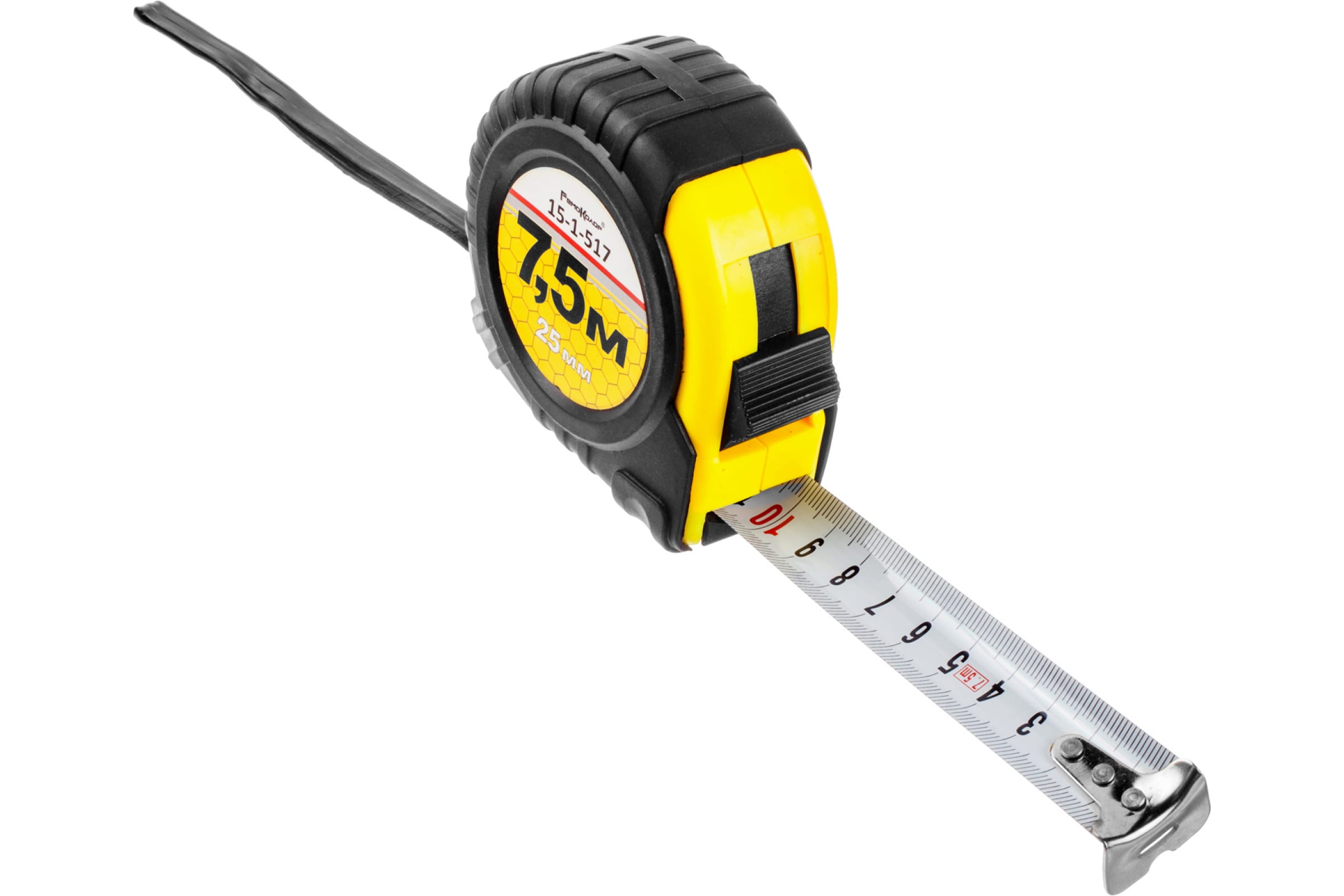 Рулетка 7,5м, ширина 25мм, надёжный корпус, чёткая шкала и автостоп — для точных, быстрых и удобных измерений при ремонте или строительстве.
