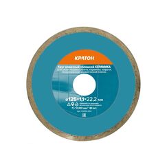 Круг алмазный сплошной супертонкий для УШМ (125 мм; 1.1 мм) Кратон предназначен для работы с керамогранитом, кафелем, глазурованной керамической плиткой и твердой керамикой. Точный алмазный диск 125 мм для чистого реза керамики и плитки без сколов, долговечен, подходит для УШМ, толщина 1,1 мм, посадка 22 мм.