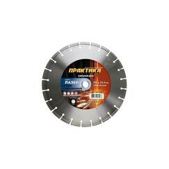 Серия «Лазер». Сегментный. Тип 1A1RSS. Сегмент 10мм. ГОСТ 10110-87. Серия специализированных дисков для профессионального применения на ручных бензорезах, настольных пилах, швонарезчиках. Сегменты приварены лазером. Рекомендовано использование на оборудовании с линейной скоростью вращения до 100 м/с. Четыре увеличенных сегмента защищают тело диска от износа. Разный состав связки от L20 до L90 позволяет подобрать диск по материалам разной твердости и абразивности от гранита до асфальта. Очень высокая экономическая эффективность при больших объемах работы. Профессиональный алмазный диск для резки асфальта и бетона, диаметр 350 мм, сегмент 10 мм, повышенная износостойкость и безопасность.