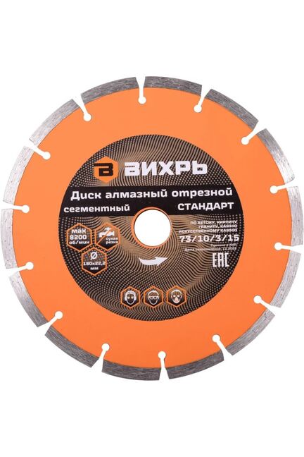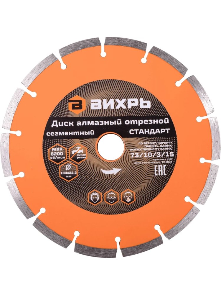 Диск алмазный отрезной сегментный ВИХРЬ 180х22,2 мм,сухая резка в Солнечный