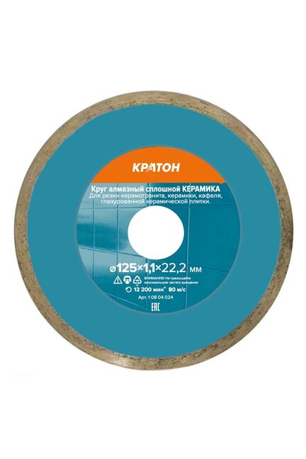 Диск алмазный по керамике сплошной КРАТОН 125х22х1,1 мм в Солнечный