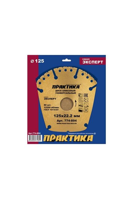 Диск алмазный сегментный ПРАКТИКА "Эксперт-Универсал" 125х22 мм, сегмент 10 мм