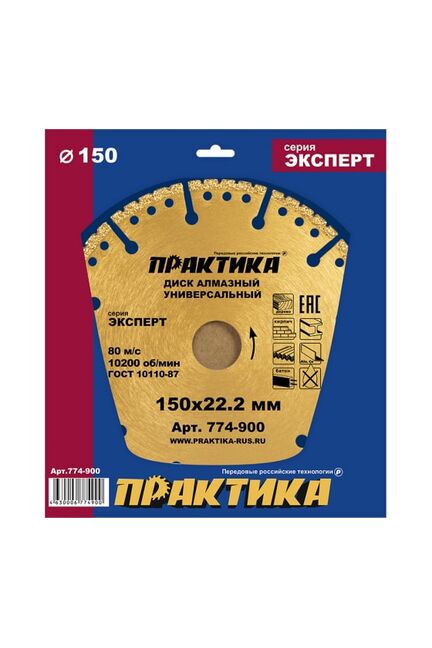 Диск алмазный сегментный ПРАКТИКА "Эксперт-Универсал" 150х22 мм, сегмент 10 мм