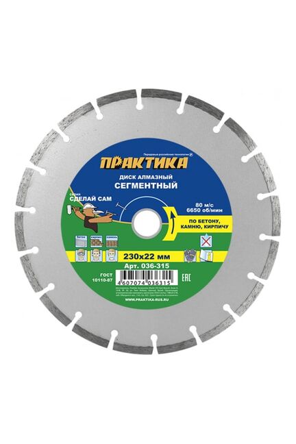 Диск алмазный сегментный ПРАКТИКА "Сделай сам" 230*22 мм