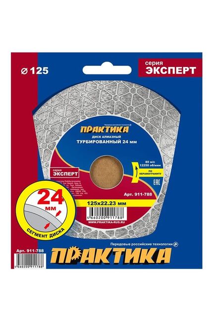 Диск алмазный турбированный ПРАКТИКА "Эксперт-керамогранит" 125*22 мм, сегмент 24мм, коробка
