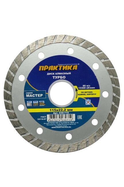 Диск алмазный турбированный ПРАКТИКА "Мастер" 115x22 мм коробка в Солнечный