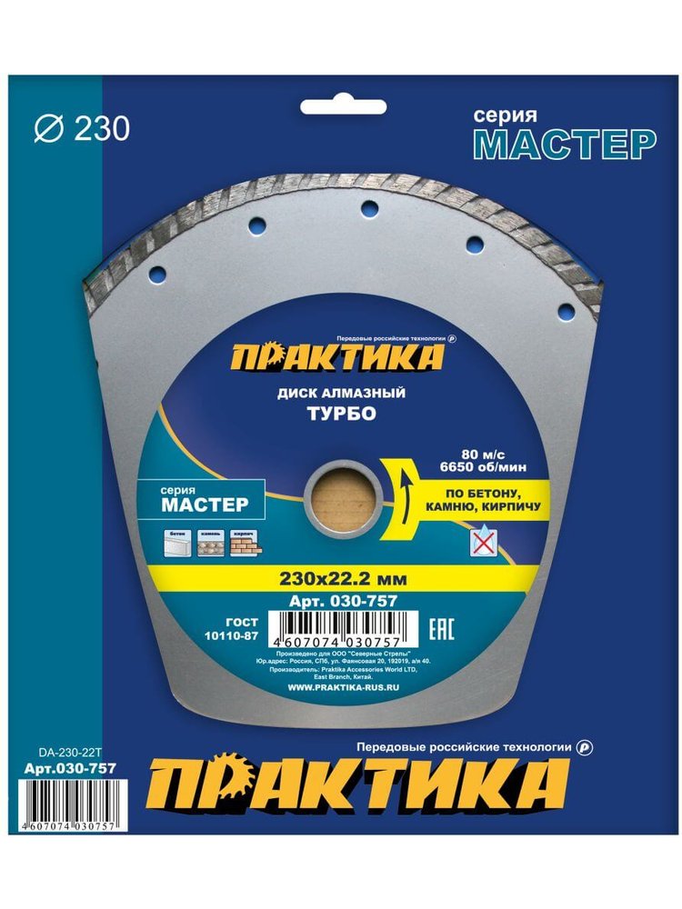 Оптимальное решение для эффективной резки бетона, кирпича и других строительных материалов — алмазный турбированный диск размером 230x22 мм. Этот инструмент гарантирует высокую скорость и чистоту реза, даже при работе с особо прочными поверхностями.