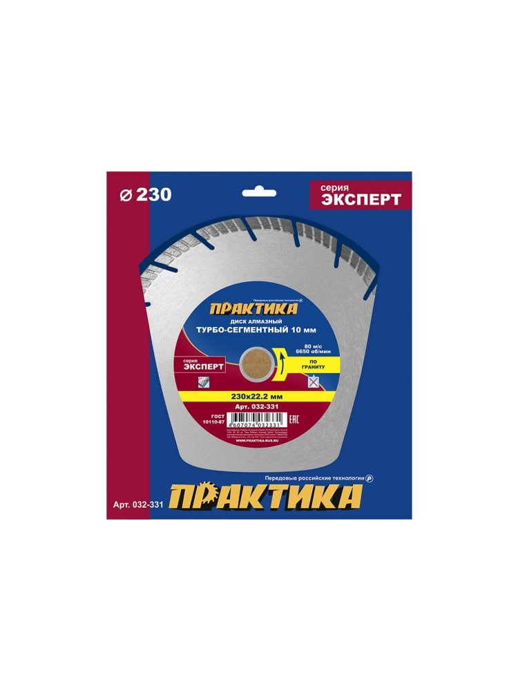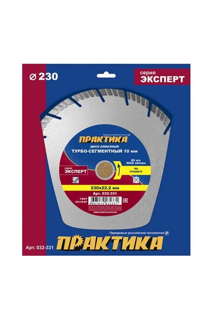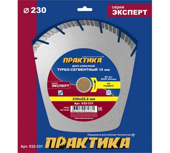 Диск алмазный турбосегментный ПРАКТИКА "Эксперт-гранит" 230*22 мм, сегмент 10 мм в Солнечный